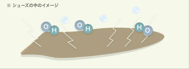 ナノ化された鉱物を主成分とする混合物質から出る微弱電流が、靴の中の水分(湿気)に作用しOHラジカルが発生します。